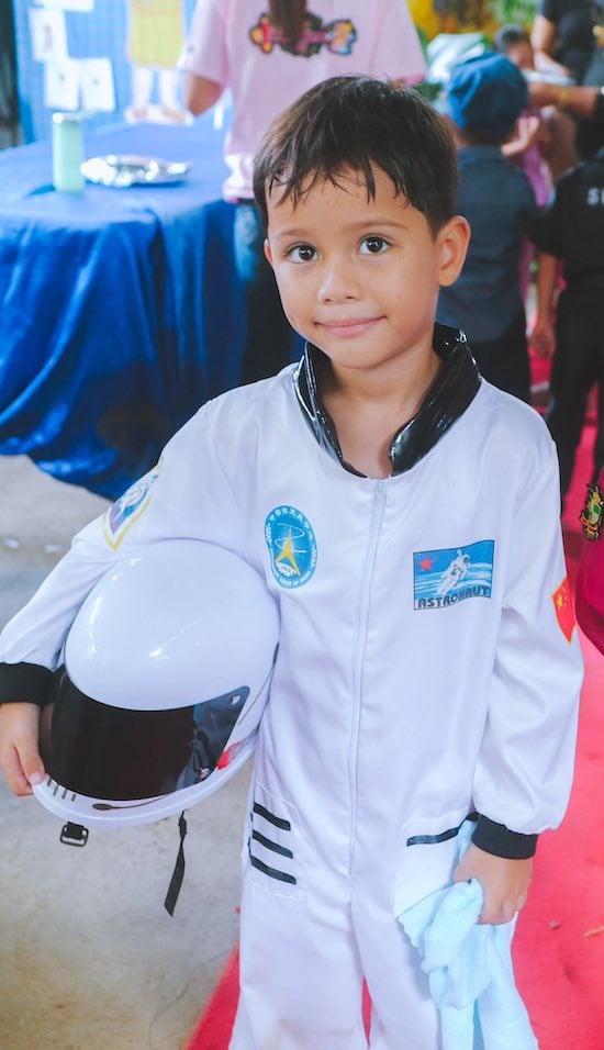 Other times dressed up as their career of choice, Kaja here as an astronaut.