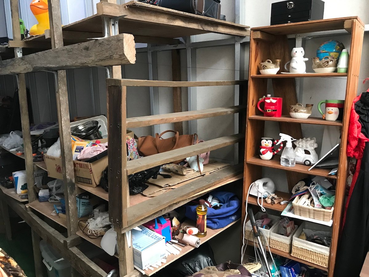 Even with ample shelf space in the adjacent storage room.