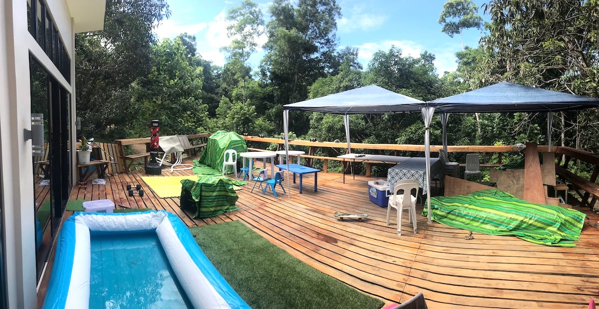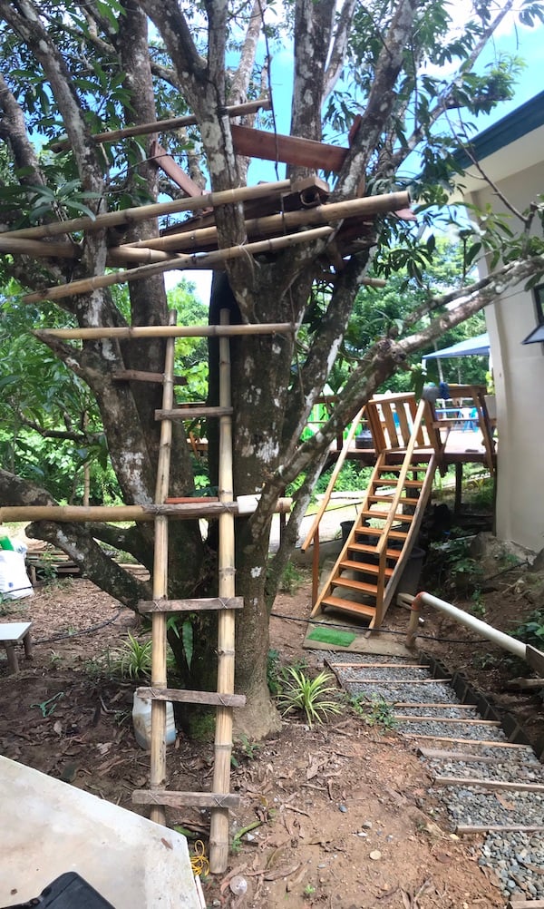 And a little tree fort for Kaja to get excited about, his own little escape place: