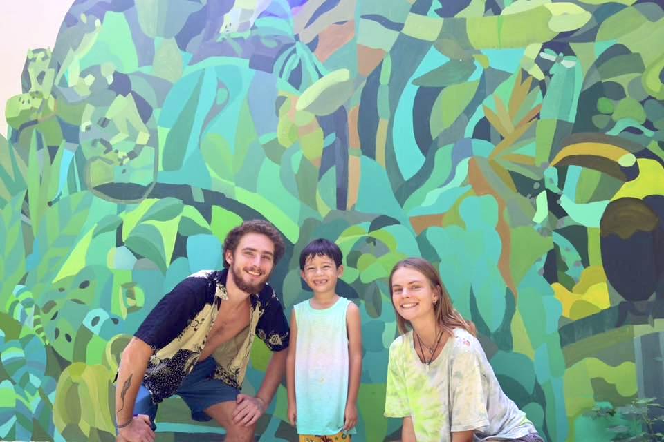 Place for guests, airbnb and volunteers. The work of our first volunteers, a mural in the back of the house to help camouflage it from the main road or passerbys: