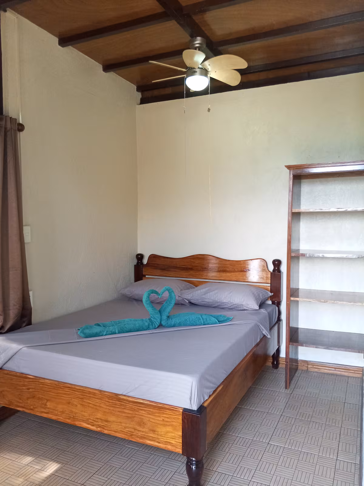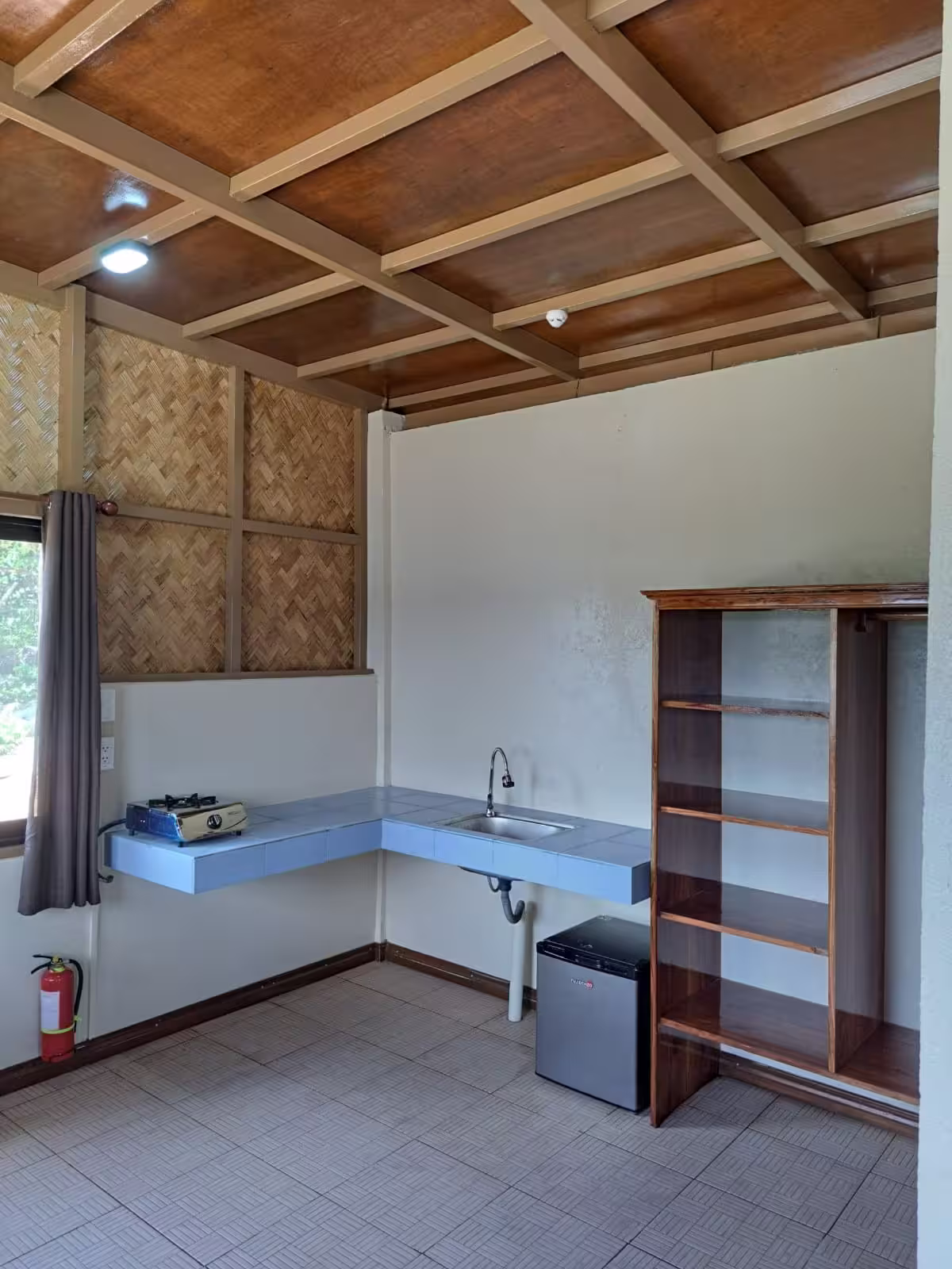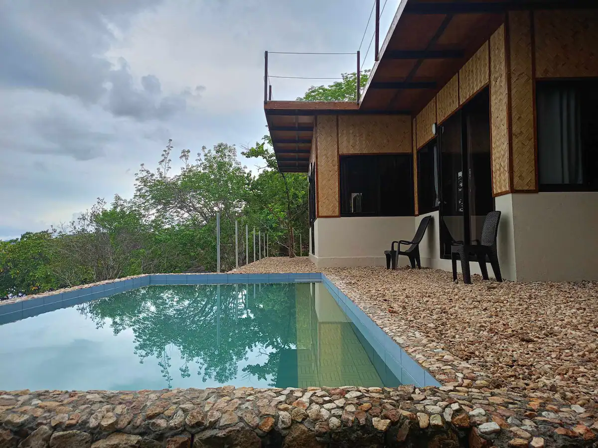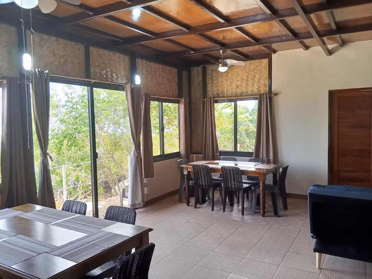 Villa with stunning overlooking sea views and large roof deck above. Enjoy the private beach, snorkeling on the reef, free kayaks, and fast Starlink satellite wifi. Island hopping and scuba diving and Hobie Cat available. Queen bed (and extra queen foam mattress on floor if needed), ensuite, kitchenette, dining table, ceiling fan, veranda. Meals available or cook your own. Easily accessible by boat from Coron. Private and peaceful and beautiful.