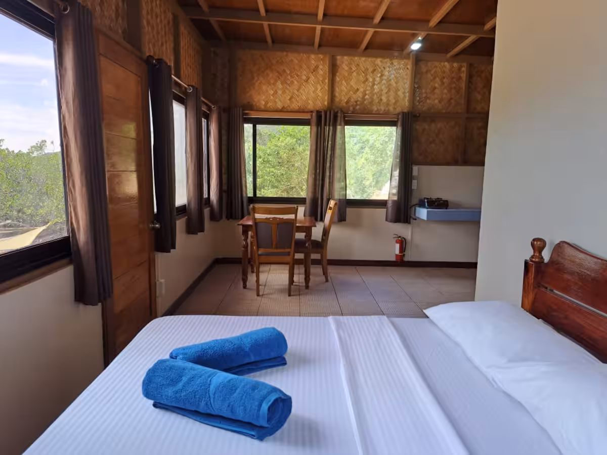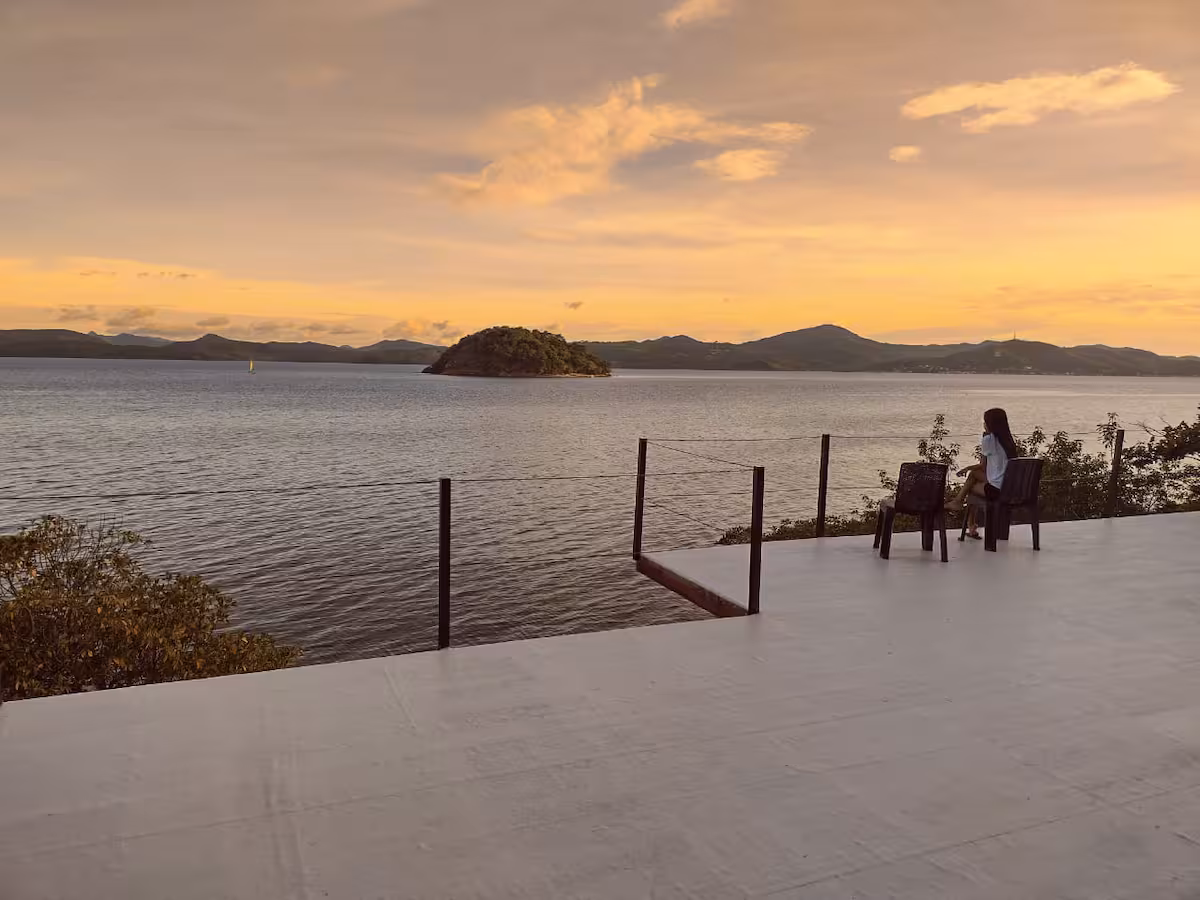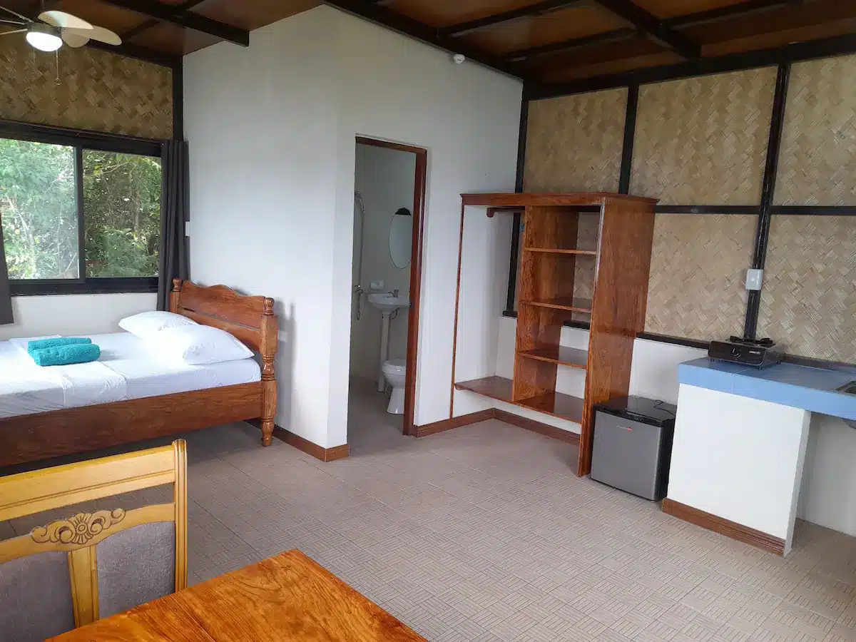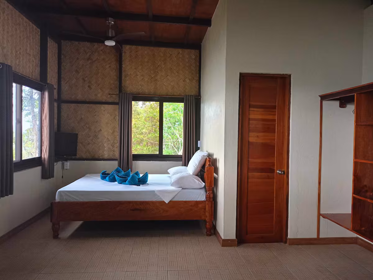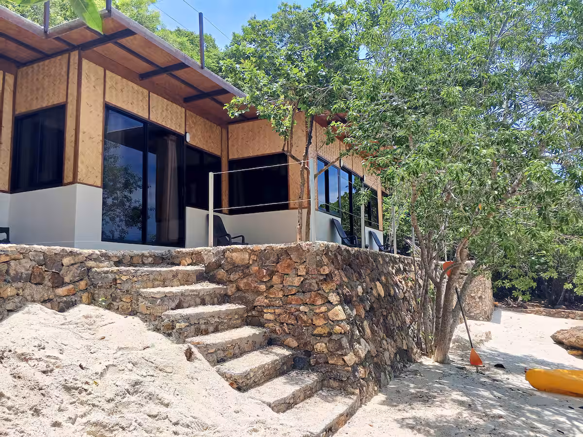Sand Island Eco-Lodge’s cliff villa with stunning overlooking sea views and large roof deck above. Enjoy the private beach, snorkeling on the reef, free kayaks, and fast Starlink satellite wifi. Island hopping and scuba diving and Hobie Cat available. Queen bed (and extra queen foam mattress on floor if needed), ensuite, kitchenette, dining table, ceiling fan, veranda. Meals available or cook your own. Easily accessible by boat from Coron. Private and peaceful and beautiful.