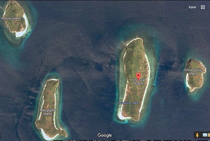 We are located in the lower left corner of Dimancal island, about half way along the long stretch of beach on the lower west side.
