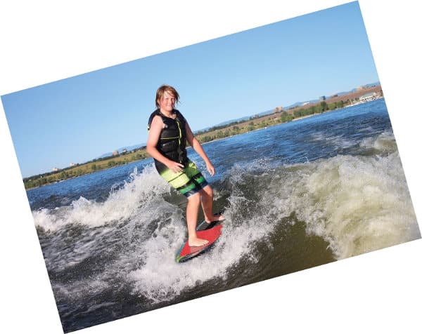 Fish is a really fun wake surf board for any rider, beginner to advanced. The full shape and Fish tail setup is forgiving and gives beginners an easy platform to learn the glide. Advanced riders will find it a nice stable board that shreds and cops air with ease. The extra thick grooved EVA deck has a big kicker and provides excellent foothold. Our test riders have liked it better than boards that sell at twice the price. Fish is 49″ x 21″ x 7/8″, has 2 fins and is for riders up to 175 lbs. You’ll be doing air reverses and shove-its in no time