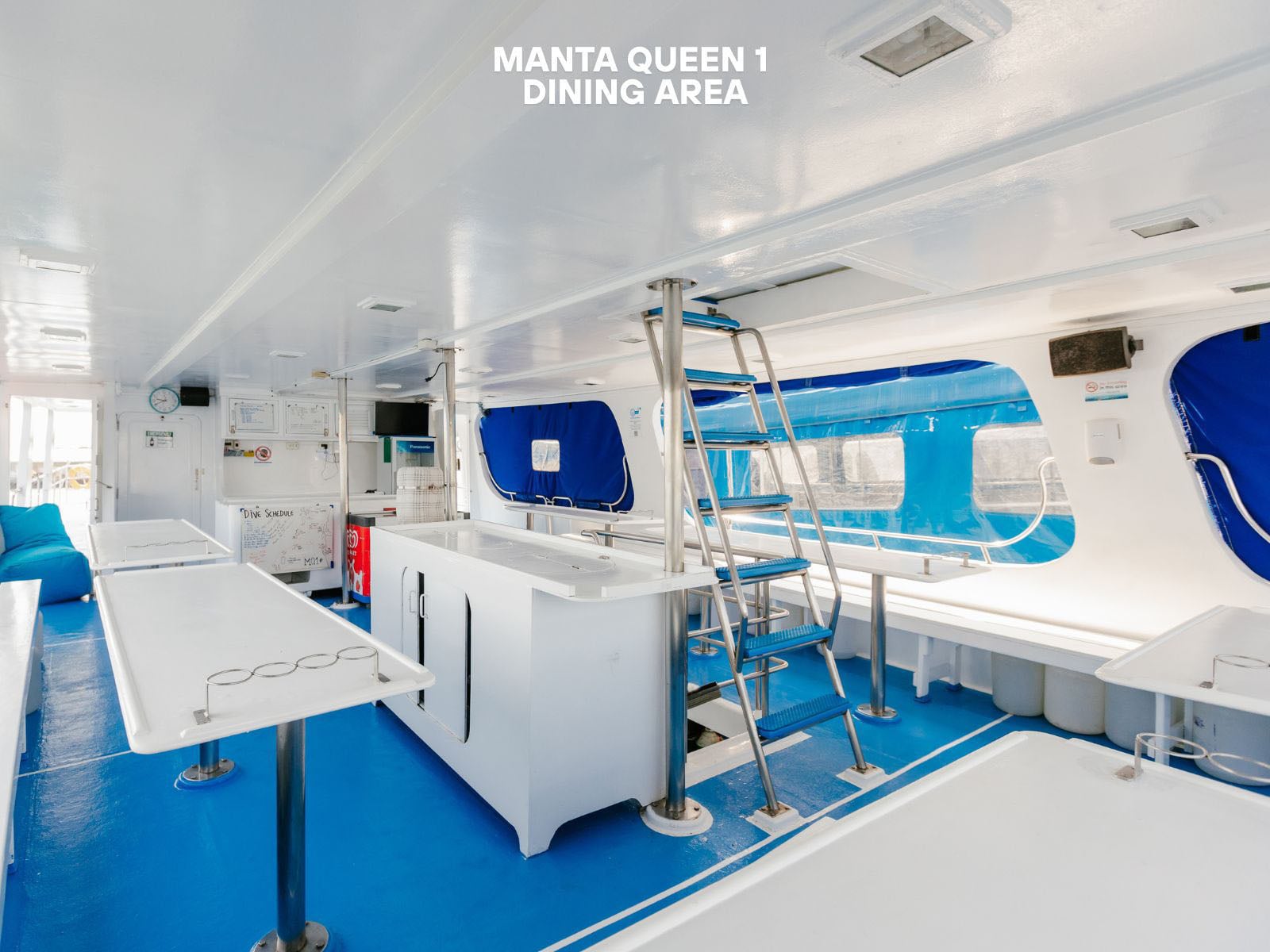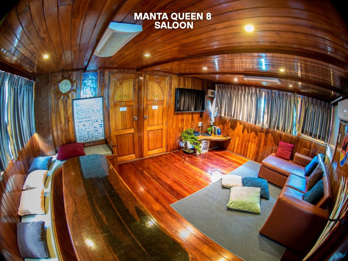 Enjoy amenities such as a cozy saloon and delicious onboard meals as you embark on an unforgettable diving adventure aboard Manta Queen 8.