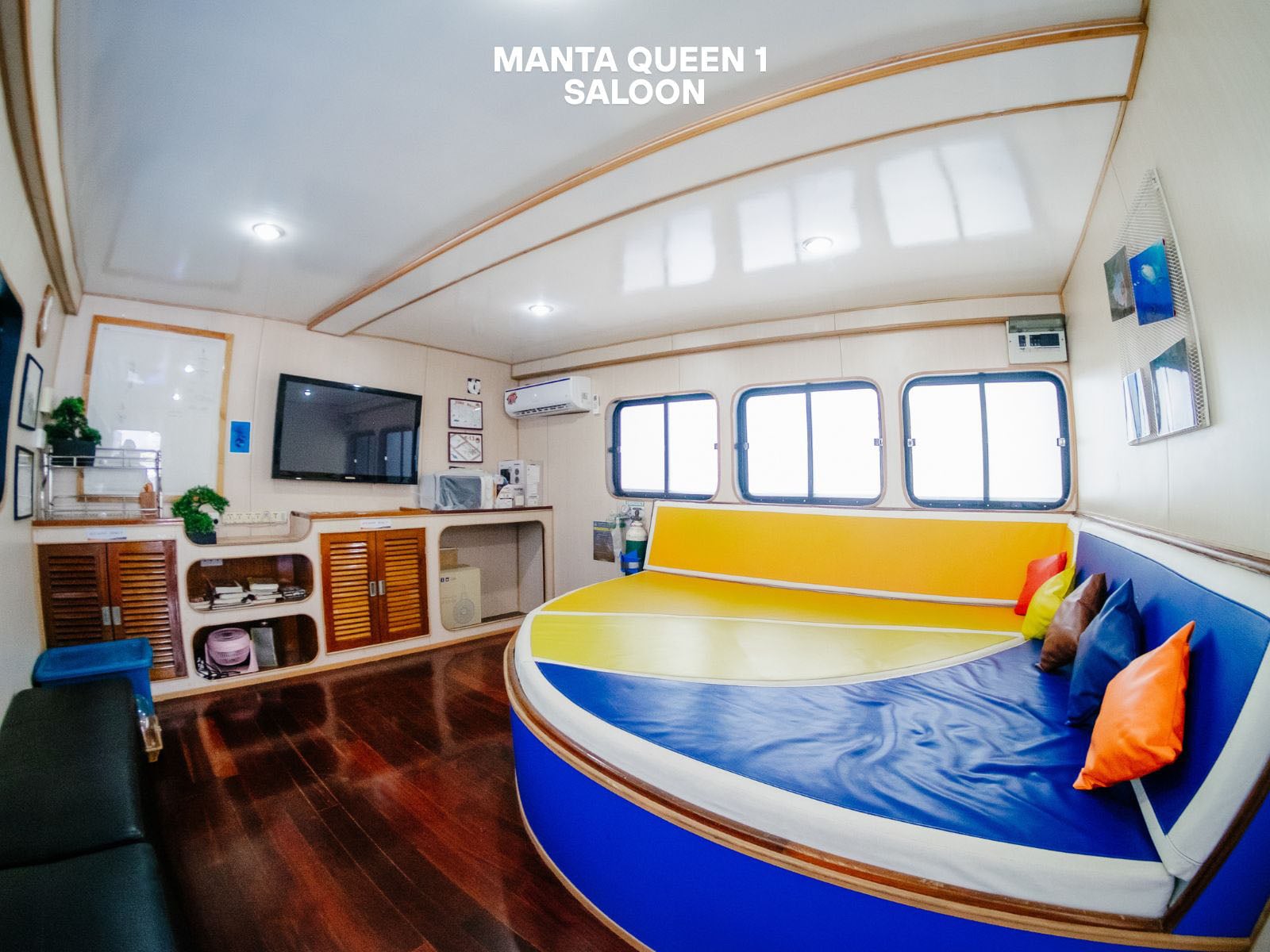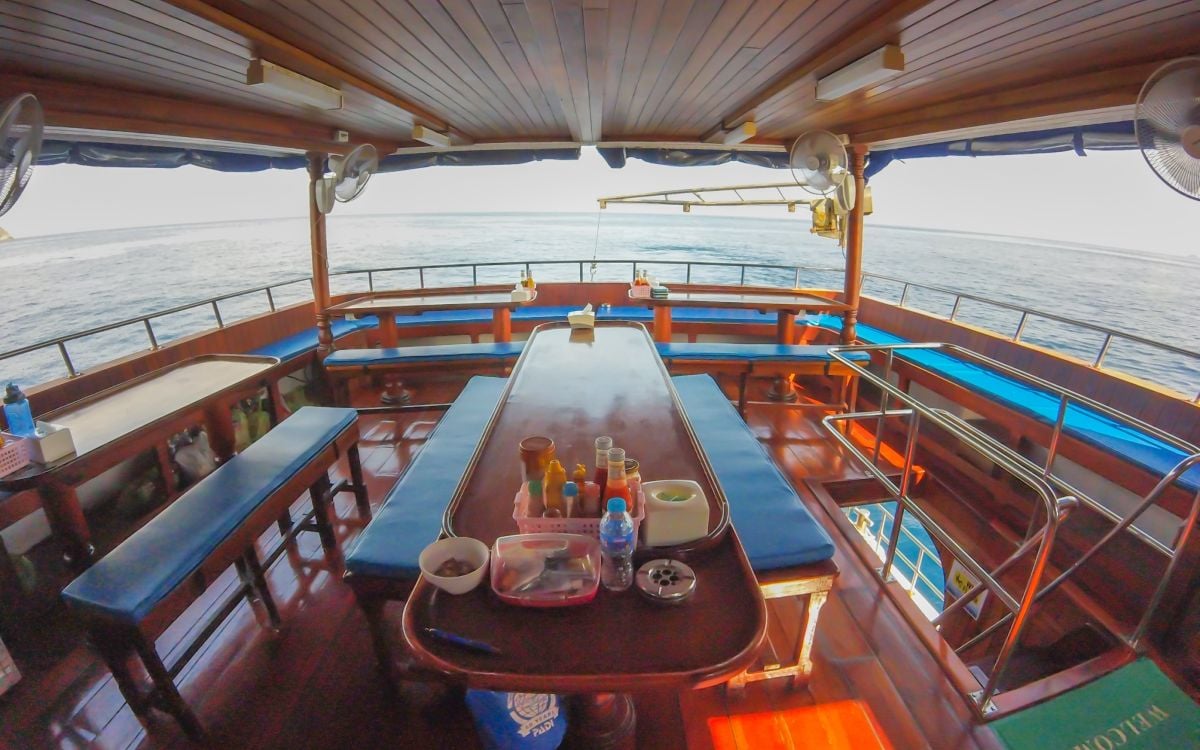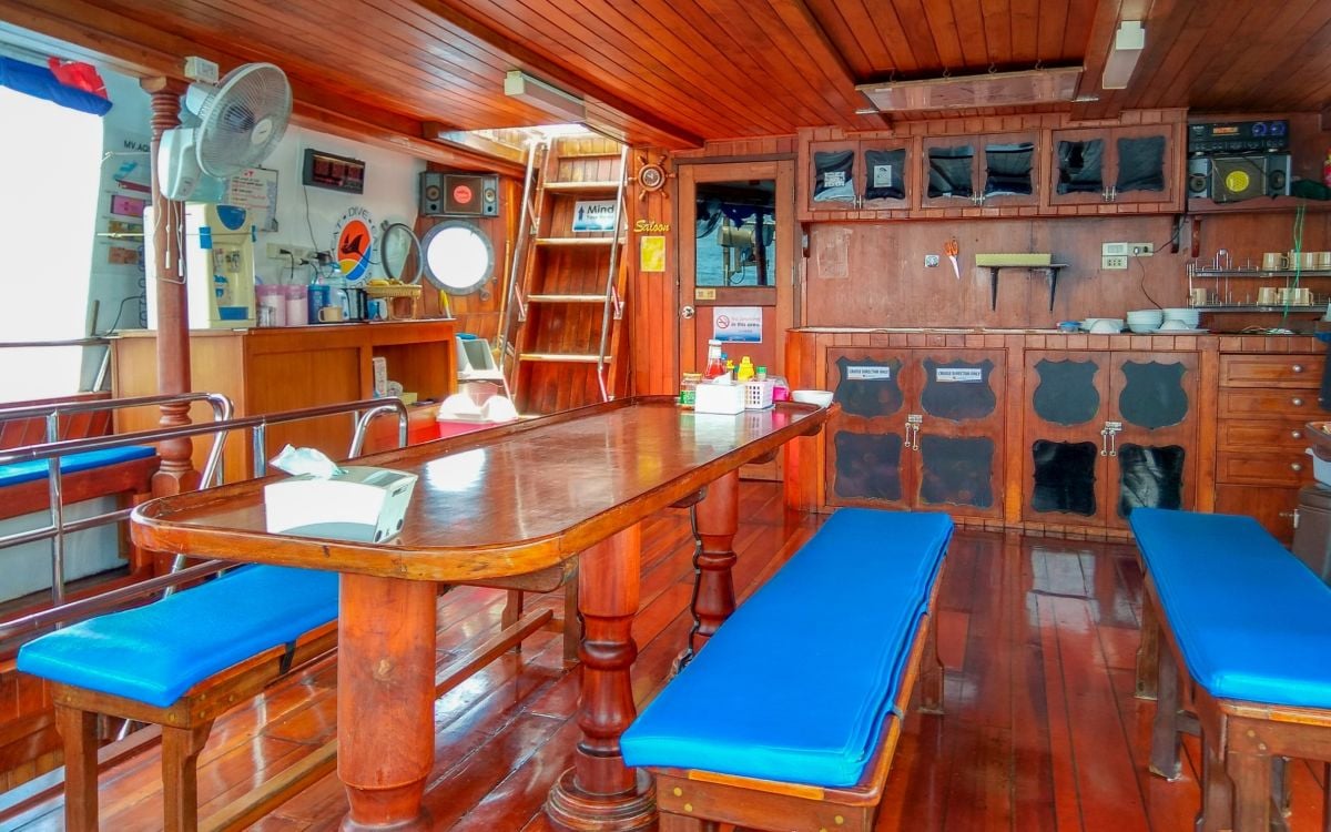 Enjoy amenities such as a cozy saloon and delicious onboard meals as you embark on an unforgettable diving adventure aboard Manta Queen 6.