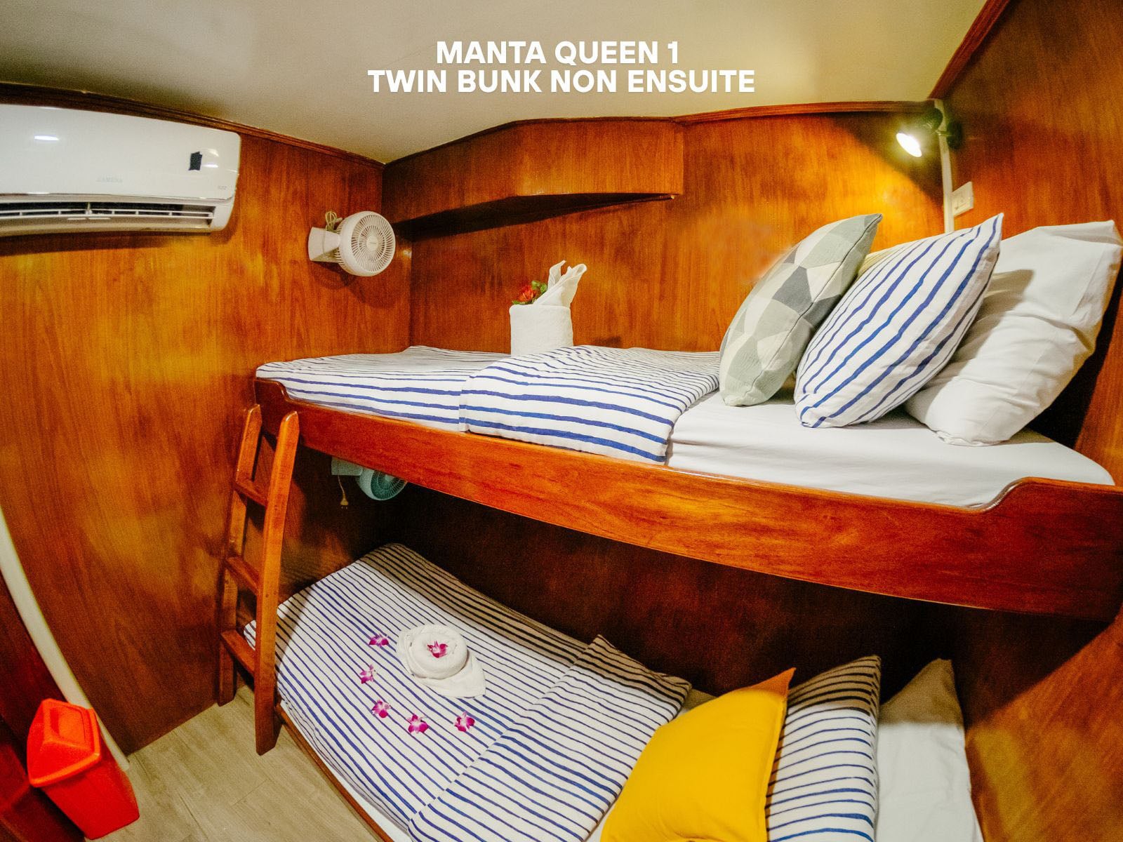 - 17.00 pm – 18.00 pm: Trip Check-in on board Manta Queen 6.