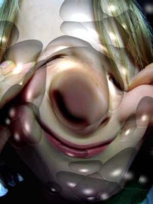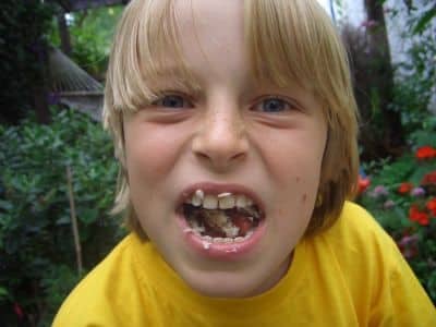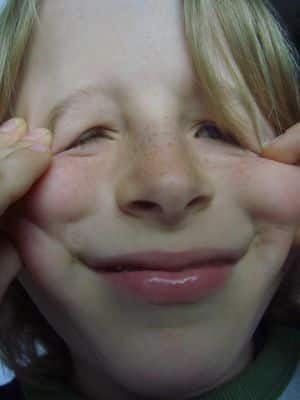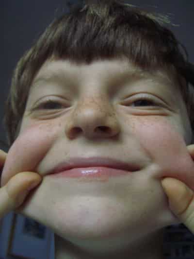 The grimace of one eating