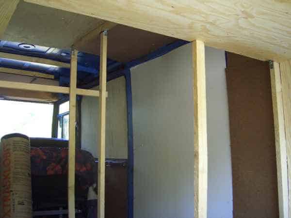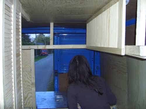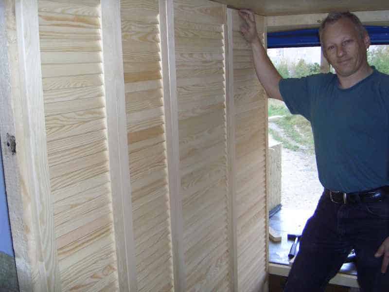 Another helping friend, and a totally perfect fit. A wonderful “accident” indeed. If you are not so blessed with such insane fortune, it would be better to measure these premade doors first and plan your basic construction around them.