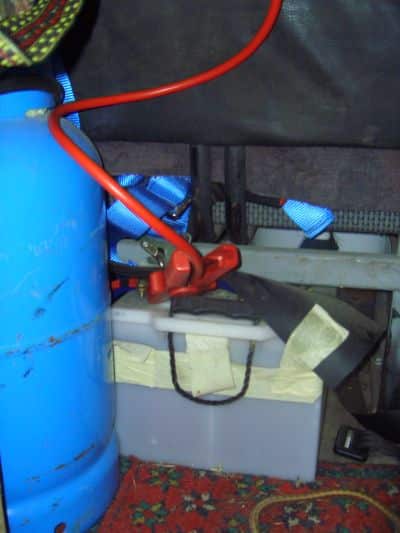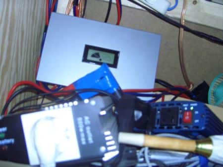 I am learning this constantly, so I will try to update this section over time, but I believe it is quite important. For example, I find that when I use my fancy wifi antenna which hooks up through the usb port on my computer and the sun has gone down, I can kill the battery quite quickly. Or playing a movie through the laptop’s internal DVD player can kill the battery before the movie ends. But I can write emails and do simple computer work right until the morning without putting a dent into the battery capacity at all. Or even charging a mobile battery requires a lot of consumption. So I charge all my other batteries (I don’t even buy disposal pen batteries anymore and everything is rechargeable, so I’m like totally green dudes) when there is enough sun and remove my battery from the laptop when in night mode. In night mode, I might put the battery into my laptop, wait a few seconds until it registers, then disconnect the power source and spend a few minutes transferring a movie to the laptop’s harddrive. This process alone has killed my boat batteries, but the laptop batteries seem to be able to handle these higher consumption levels. Or I’ll use the laptop batteries for wifi internet once the sun goes down, and switch back to boat batteries once I’m offline. Seems that watching a movie straight from the harddrive sucks much less energy. If I want to get fancy, I can have laptop speakers with their own power source/batteries running through the earphone output, but even adding the docking bay to my laptop, which has better speakers and the DVD drive, can suck noticeably more power. So you’ll have to play around with this and experiment. Just make sure you do not drain your battery too much. It would definitely be a worthwhile investment to get one of those voltage meters. They are not expensive and you can get one in almost any electro shop. With this I can tell when my pen (AA or AAA) batteries are getting weak and when I should recharge them if I don’t want to run out of power or music at some inconvenient time, or know when I should take advantage of a sunny day. Or if I am parked somewhere for a longer period of time, I can check my car battery, as the alarm system slowly sucks off that, or the car radio, or some of the lights. Car batteries should remain at near 100%, so you don’t want to kill the capacity of those either. Once I found myself charging those from the sun as well, using jumper cables hooked up to my boat batteries, charged by the sun (pictures above). Just remember that these car batteries are also grounded to the vehicle, so really think things through before hooking up anything. A basic lesson from an electrician or car mechanic could definitely be a worthwhile investment. After all, it’s your life. And screwing up the polarities on your batteries could cause them to explode, with battery acid in your face, and you can kiss your sight goodbye. I read once that you should have a damp cloth over car batteries when jump starting from another vehicle. And it is important what order you hook things up in. I generally remember that the plus/positive end must always be connected whether connecting or disconnecting the minus/negative/ground end.