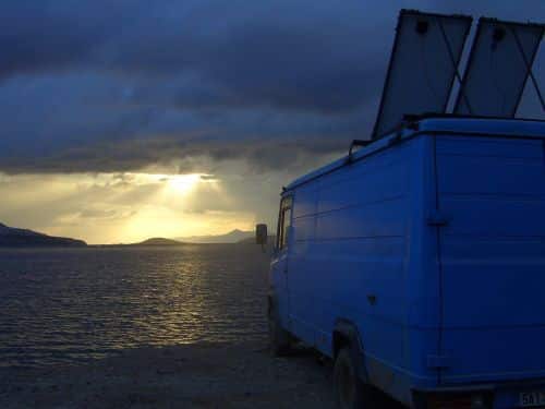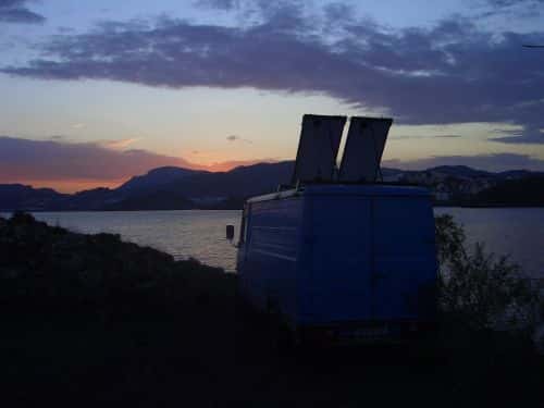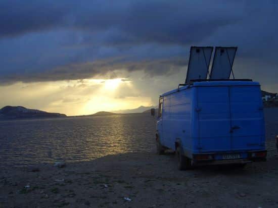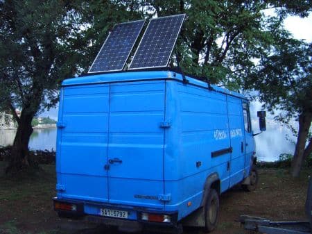 Of course everyone and their dog argued against me that it was simply not possible, but no, the solar panels are working absolutely magnificently and I am quite happy with them. My electrical needs are one to three laptops worth for 8 hours a day. For this I was advised to get two larger 110 Watt solar panels, which nicely fit on the top of my roof. I got them installed by a welder, who designed it so that they could be tilted in various ways and directions. But I don’t even bother doing that, at least during the summer, as they seem to pick up enough light with a moderate sun angle, and even when cloudy. Furthermore, by being down and flat, they are not really visible, and hence not an attraction for local starving thieves. Most people are surprised to learn I have solar panels, but then I don’t have a caravan but a discretely designed truck which doesn’t attract attention in that department.